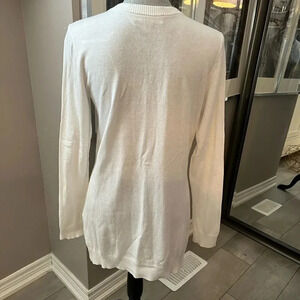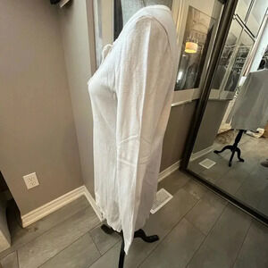 Michael Kors Long lightweight sweater in white with gold detail and drawstring and side slits. Cotton viscose blend material.