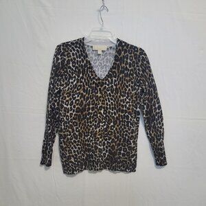 Michael Kors Lightweight V-Neck Leopard Print Sweater Size S