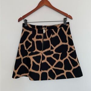 Michael Kors animal print skirt featuring a bold gold zipper. Perfect for a chic look. Size tag was ripped, estimated is 8 please review measurements, skirt is in perfect condition