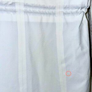 There are two faint stains on both the right sleeve and the left sleeve and one on the hood. There is a negligible stain on the right side of the rear and left side front pocket. More detailed images have been taken with the camera flash on. The price has been heavily reduced to reflect the condition.