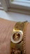 This chic Michael Kors bracelet features a gold-tone finish with a hinged closure. The design includes a lace crystal halo setting around the MK logo. This is in brand new pristine condition