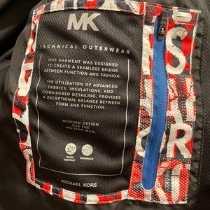 Defined by a bold logo print, this hooded jacket is the perfect combination of function and fashion. This water-resistant style features reflective print, Wind breaking elements and quality materials.