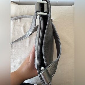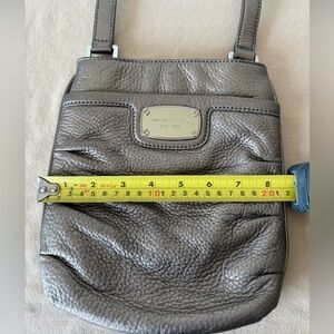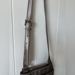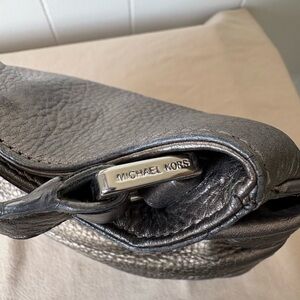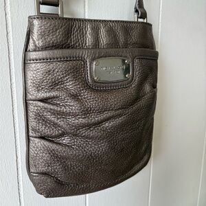 Stylish metallic leather crossbody bag by Michael Kors. Features a sleek design with adjustable strap.
