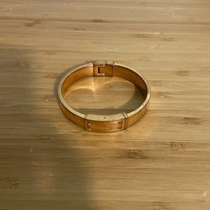 Michael Kors Metallic Rose Gold-Tone Logo Plaque Bangle Bracelet.