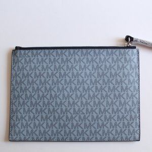 Michael Kors Montauk Clutch Saffiano Leather Pale Blue Authentic