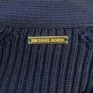 Great quality oversized navy cardigan with substantial weight to it. Beautiful quality in perfect condition. Branded gold buttons. Can fit up to Large.