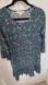 Elegant paisley blouse with navy and teal design. Features a classic neckline.