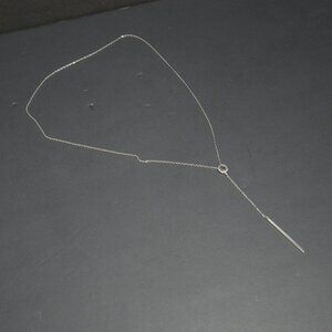 Elegant necklace featuring a discreet crystal on the end of the baguette. Over all length 27 1/4" including the pendant. Distinctive Michael Kors quality and design. Michael Kors name inscribed on loop and baguette (rod pendant).