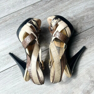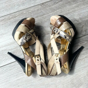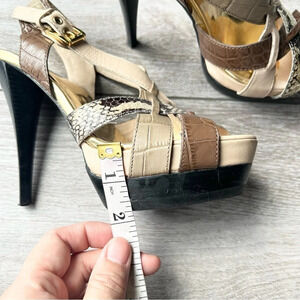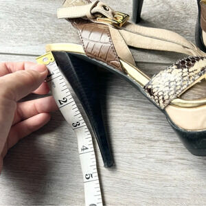 Michael Kors Niki Cross Strap Genuine Snakeskin Stiletto Heels Sandals
