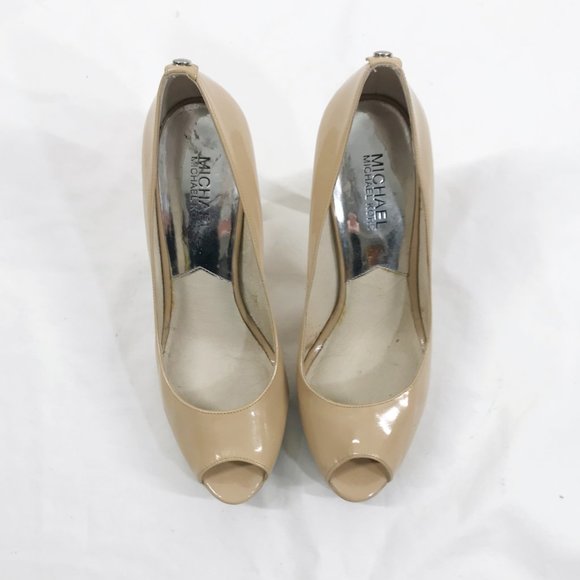 Michael Kors Pumps. Patent leather in beige or nude colour tone with a peep toe and platform front. Marked a size 8 but run a bit small.