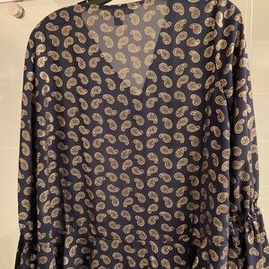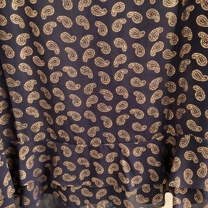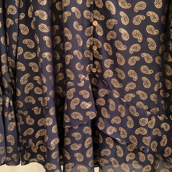 Beautiful Michael Kors royal blue chiffon like fabric with allover gold paisley with detailed ruffles