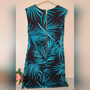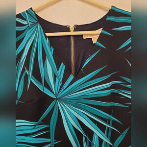 Michael Kors Palm Leaf Print Dress, Blue and black, V-Neck, Sleeveless with back zip, size S. It measures 16.4in armpit to armpit and 36in long. In gentle pre-owned condition. Please see photos for details. Feel free to ask any questions you may have prior to purchase.