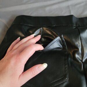 Michael Kors Pants Womens XL Black Pleather Flare Pockets High Waist Stretch