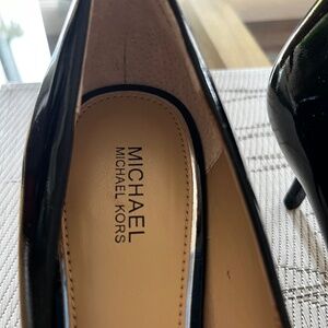 Never worn 2" Michael Kors paten leather heels with rhinestone embellishment.