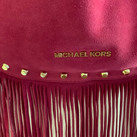Michael Kors Pink Suede Billy Fringe Messenger Bag
