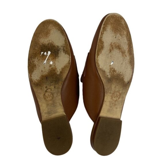 Michael Kors Plate Brown Leather Mules Slip On Slides Size 7.5 Gold Hardware