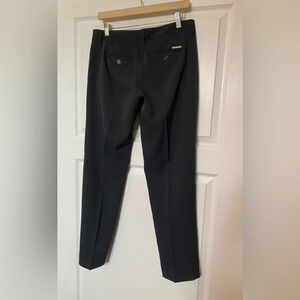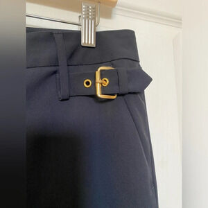 Beautiful crop dress pants with front pleat, zipper and button, as well as stunning gold buckle details. Classic lines, these pants are so chic!