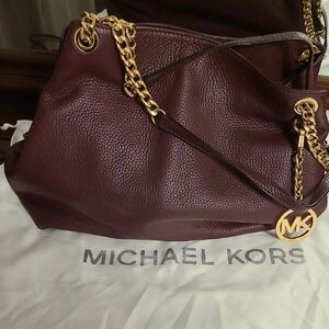 Michael Kors Plum Leather Shoulder Bag with Gold Accents