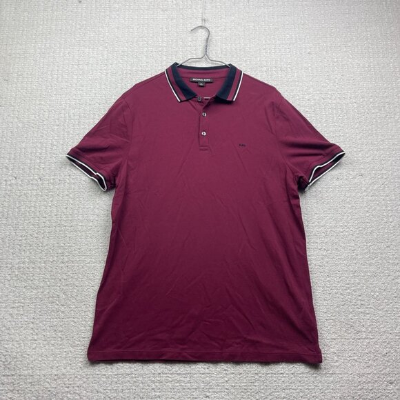 Michael Kors Polo Shirt Burgundy Red Short Sleeve Casual Rugby Mens Sz L Preppy