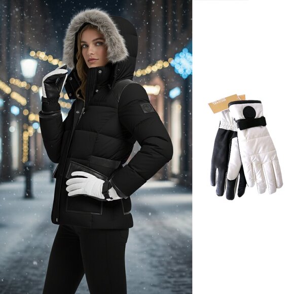Elegance meets functionality. These white MICHAEL Michael Kors “Touch Tip Gloves” feature real black leather accents and the signature round black MK logo for a classic, high-end look. The timeless white and black contrast, paired with a semi-shiny finish and soft quilted details, adds a some flare to any winter outfit. A modern, chic accessory perfect for the winter season. Soft black lining for warmth Clasp and D-ring keep gloves paired Velcro cinched wrist for a secure fit Touchscreen compatible (thumb & index finger) According to the manufacturing tag (see photo), the thumb and index finger materials are designed for use with touchscreen devices. Note: The phone photo is for reference only to show touchscreen use — the gloves shown there are different. Shell: Leather (black) and Nylon (white) Lining: 100% Polyester Filling: 65% polypropylene, 35% Polyester Spot clean These gloves are new, unused and they have original tag. Possibility of colour variance due to lighting and differences in screens. New to Poshmark? - Use code statelea when you sign up for $15 off your first purchase! MSRP: $138 plus tax ($156) Tags: Michael Kors, MK gloves, Michael Kors gloves, touchscreen gloves, touchscreen compatible, quilted gloves, leather trim, black and white, winter accessory, chic style, elegant look, cozy fashion, luxury brand, designer accessory, winter essentials, stylish gloves, soft lining, cold weather style 161025,105