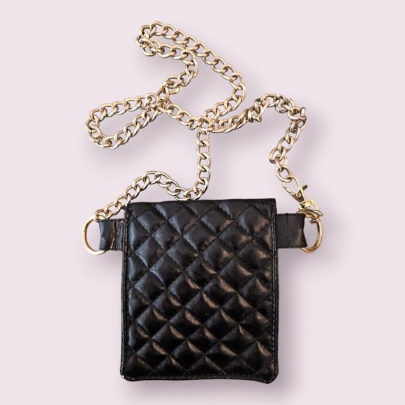 Stylish Michael Kors quilted leather belt bag with gold hardware and chain strap. Compact and versatile — can be worn as a belt bag or crossbody.