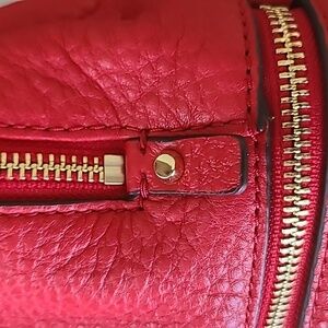 Stylish red backpack by Michael Kors. Features striking gold studs. Ideal for adding flair to any outfit.