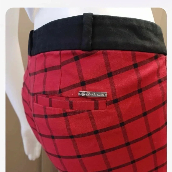 Michael Kors Red Black Plaid Trousers Pants Size 8