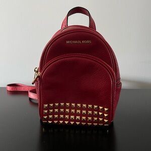 Mini Michael Kors red backpack with gold coloured details. Gently used, condition is like new.