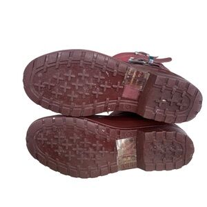 These Michael Kors winter rain boots feature a striking red and black design, perfect for braving wet weather in style.