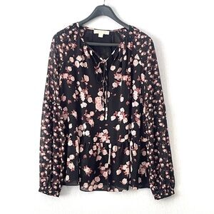 Michael Kors Rose Georgette Long Sleeve Floral Blouse