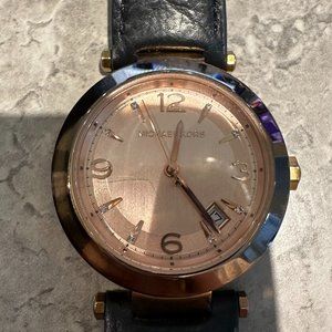 Michael Kors Rose Gold Genuine Leather Double Strap Watch