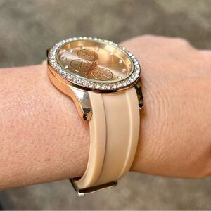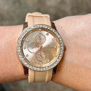 Michael Kors Rose Gold Women's Watch with Crystal Bezel, Rubber Band