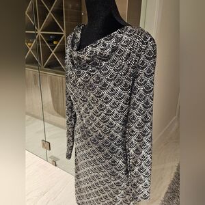Chic long sleeve dress with a textured pattern. Perfect for elegant occasions.