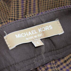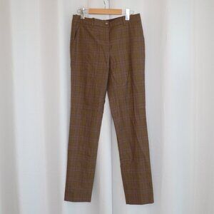 Michael Kors Runway Collection Italian Wool Brown Plaid Straight Leg Pants Sz 4