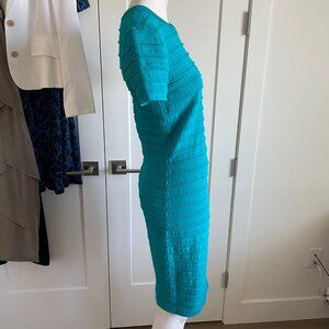 Michael Kors SS Crew Nk Bodycon Silhouette Knit Frill Layered Dress Turquoise M