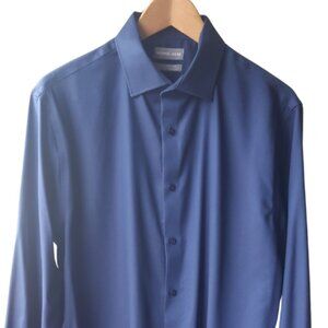 Michael Kors SZ16 Slim Fit Men's Wrinkle Free Cotton Marine Blue Button Up Shirt