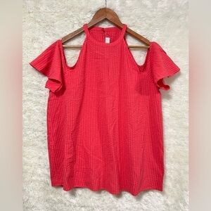 Michael Kors Seersucker Halter Neck Cold Shoulder Short Flutter Sleeve Stripes