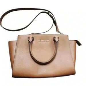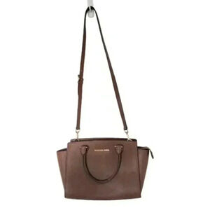 Tags: classic, structured, leather, office, professional, brown, tan, crossbody purse, MK, Michael Kors