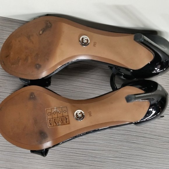 Michael Kors Sequin Bow Ankle Strap Heels, Black Leather, Womens Size 9 M / 40