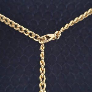 Ornamented with Gold tone chain and a gold tone pendant stamped "Michael Kors -chain can be worn in front or back (lobster clasp)