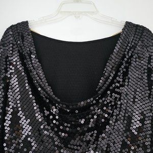 Michael Michael Kors black sequin draped Cowl neck/back long sleeve blouse