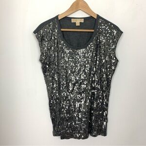 Michael Kors Sequin Scoop Neck Cap Sleeve Tee Gray Sz S