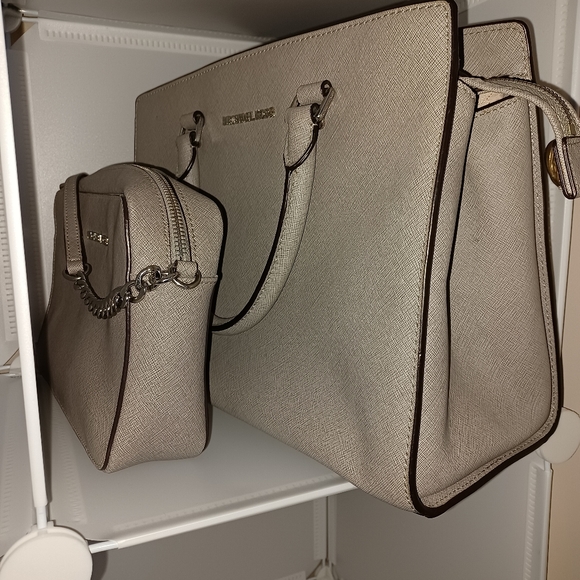 AUTHENTIC preowned Michael Kors Saffiano leather set. Sings of use but in very excellent condition.