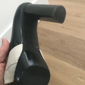 Gorgeous two toned Michael Kors shoes. Peep toe with lovely chunky heel for easy all day wearing! Ivory and black. Fantastic condition as seen in photos.