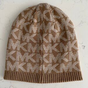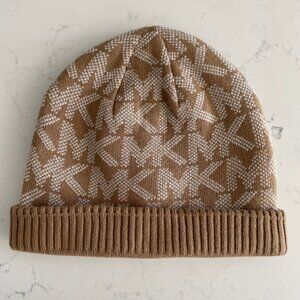 Michael Kors Signature Knit 100% Acrylic Beanie Toque in Tan + White NWOT