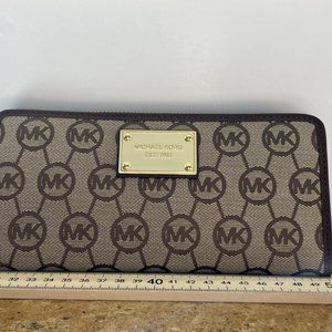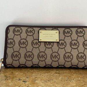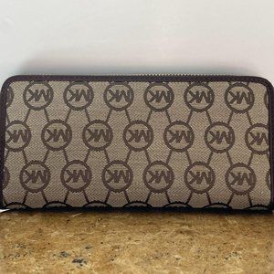 Michael Kors Signature Logo Brown Wallet Womens Golden Hardware Handbag New