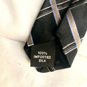Michael Kors Silk Tie Black with Silver and White Checkered Pattern Classic