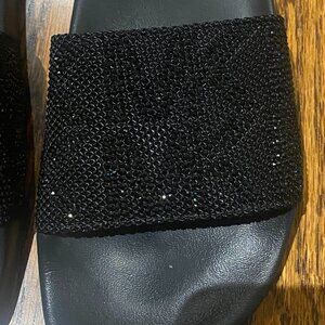Authentic Michael Kors size 7 slides. Black rhinestone encrusted MK logo. All rhinestones are intact. Worn once so in excellent condition.