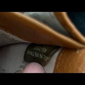 Interior cloth is in EXCELLENT condition with no visible wear. Back side has indentation from storage as it happens with storing leather.