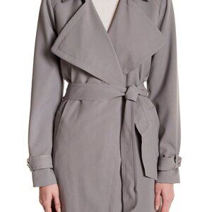 Michael Kors Soft Dusty Muted Slate Steel Blue Grey Long Draped Trench Coat XS